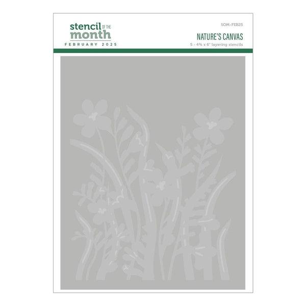 Nature's Canvas - February 2025 Stencil of the Month: Transform your projects with the February 2025 Stencil of the Month, Nature's Canvas This stunning set includes 5 layering stencils, each measuring 4.725 " x 6", designed to create a beautifully detailed floral frame perfect for a variety of crafting applications.