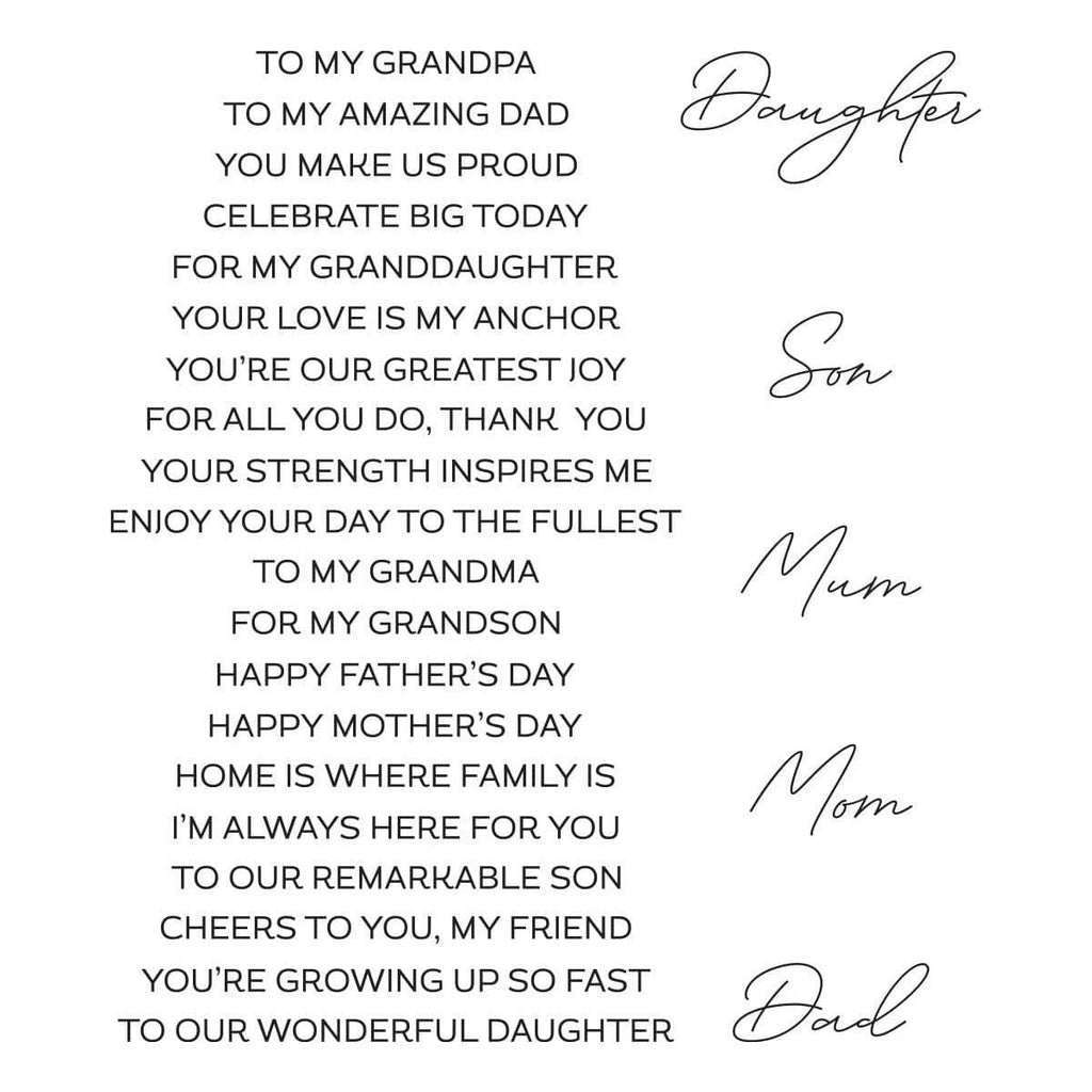 Nearest & Dearest - Celebrate family and cherished relationships with the Nearest & Dearest stamp set, featured as the March 2025 Clear Stamp of the Month. This heartfelt collection includes 7 clear stamps, featuring a mix of elegant script and classic typography, perfect for honoring parents, grandparents, children, and loved ones. Whether you're creating cards for Mother's Day, Father's Day, or simply sharing appreciation, these sentiments bring warmth and love to every project. Add a meaningful touch to your handmade creations with this versatile and thoughtful stamp set.