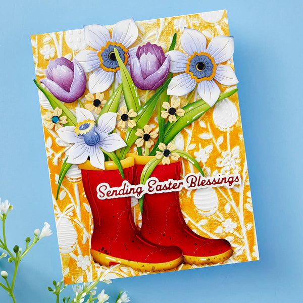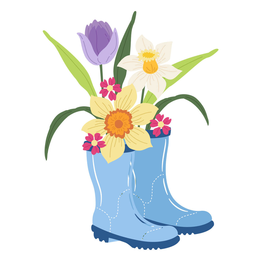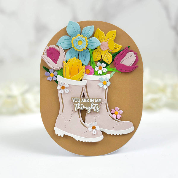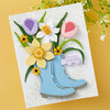 Rainboot Bouquet- Small Die of the Month! This 11-piece Die Set released February 2024 to our Small Die of the Month Club creates a variety of beautiful card fronts. Use to create cards, décor, gift card holder, gifts, and more!