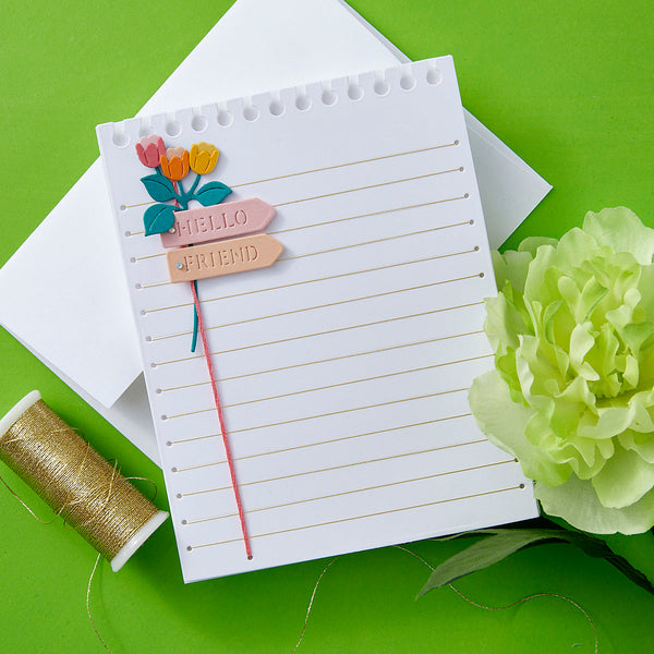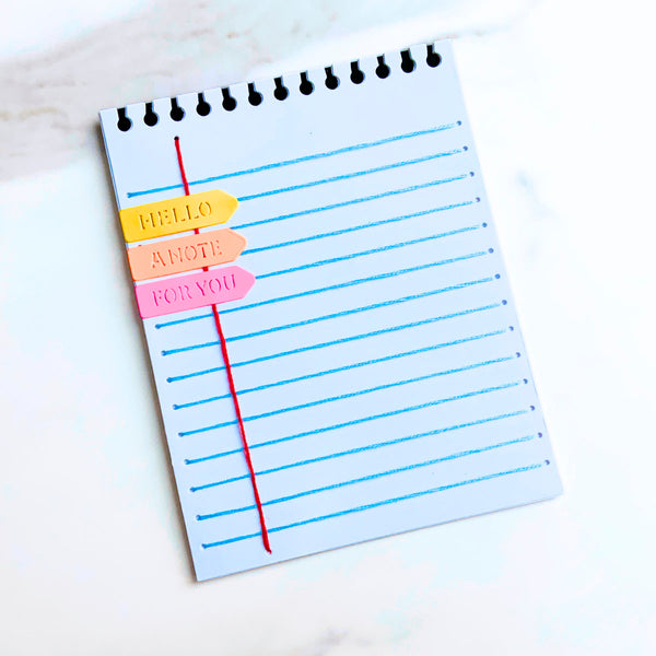 Also included are five sentiment tabs—Hello, For You, Thanks, Friend, and A Note—perfect for customizing your cards, tags, or journal pages. Whether you're sending happy mail or crafting a nostalgic classroom-inspired scene, this set adds personality and texture to every detail.