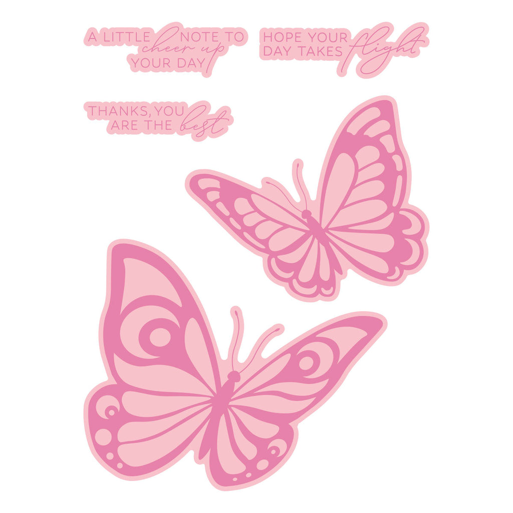Take Flight - January 2025 BetterPress of the Month: Let your creativity soar with the January 2025 BetterPress of the Month, Take Flight. This elegant set features 5 press plates and 5 coordinating dies, offering endless possibilities for creating intricate butterfly-themed designs and heartfelt sentiments.