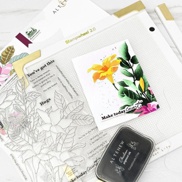 Altenew - Stampwheel 2.0 - The Stampwheel 2.0 expands on the success of Altenew's original Stampwheel. Introducing exciting upgrades like a larger workspace with a detachable side, precision inch scales, and a premium photopolymer Sticky Mat. These new features enhance versatility and accuracy, making this tool perfect for unlocking your creative potential. Designed to elevate every crafting project, the Stampwheel 2.0 reflects our ongoing commitment to innovation, supporting and inspiring crafters at every level.