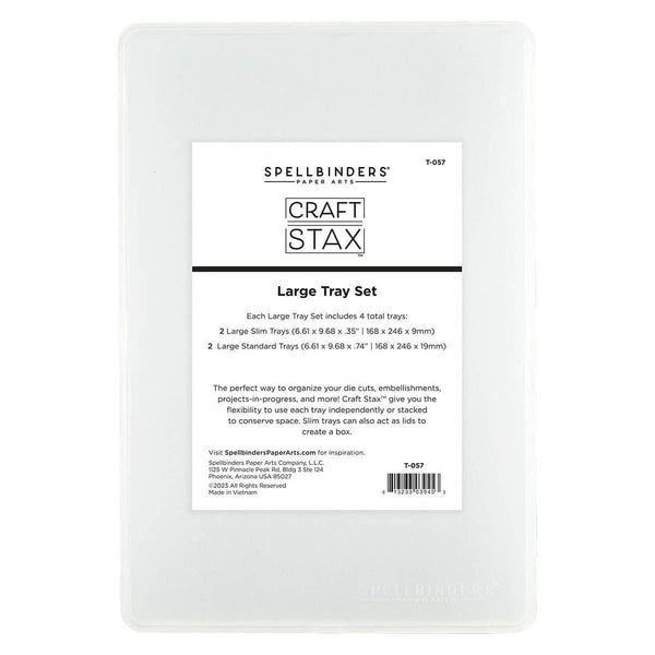 Craft Stax - Large Tray Set This set includes four stackable frosted plastic trays that combine to create two large sized storage boxes. These versatile trays can be used in multiple ways: combine a slim tray with a standard tray to create a storage box, use each tray separately, or stack them all together for a space-saving storage solution.