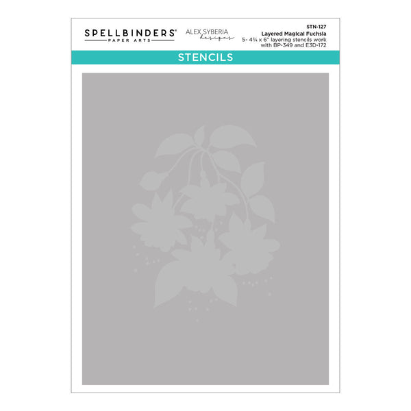 Layered Magical Fuchsia Stencil is part of the Magical Fuchsia Collection by Alex Syberia Designs and are made of durable mylar stencil material. The five stencil sheets create a wonderful and colorful four blossom sprig that hangs like a pendulum that characterizes this sweet botanical design. Works with BP-349 Magical Fuchsia Press + Foil Plate & Die Set and E3D-172 Magical Fuchsia 3D Embossing Folder for a stunning effect!