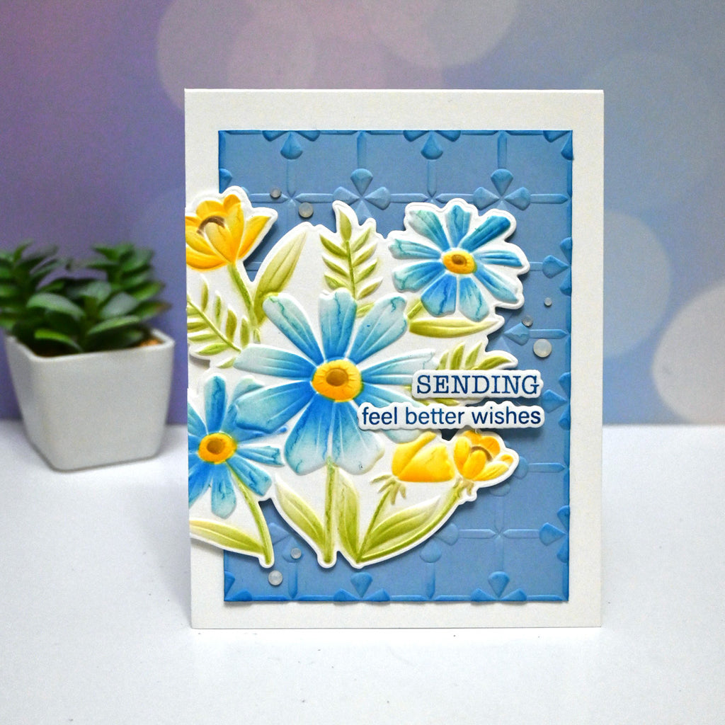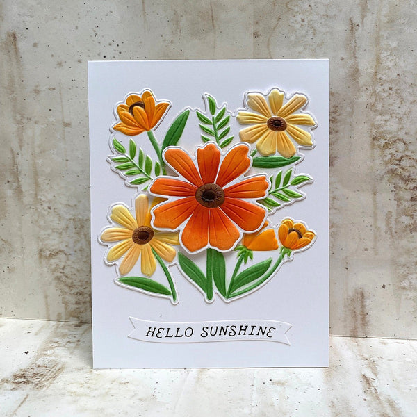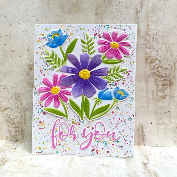 Thank You Bouquet 3D Emboss & Cut Folder is a 5.50 x 8.50 in. embossing folder with seven thin metal cutting dies to cut out all the embossed images. This set creates a beautiful floral bouquet, five individual blooms and a thank you phrase. Add these wonderful elements to any of your projects!