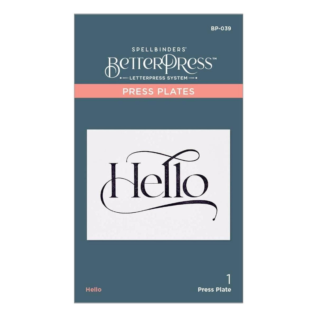 Hello Press Plate is part of the BetterPress Collection by Spellbinders and is an elegant font for the word, Hello. If you are looking for a simple and beautiful note to send, this will give a wonderful first impression! Ink the plate with the BetterPress Ink to be pressed against the BetterPress Cotton Card Panel and Sheets to create a crisp letterpress design.