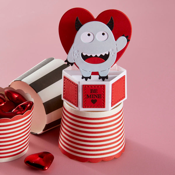 Monster Love Pop - December 2024 Large Die of the Month: This adorable 21-piece die set allows you to create fun and interactive pop-up cards with lovable monster characters and Valentine-themed accents. Perfect for crafting heartfelt cards, treat boxes, and decorations for your loved ones. Spread love and joy with this playful and versatile set!