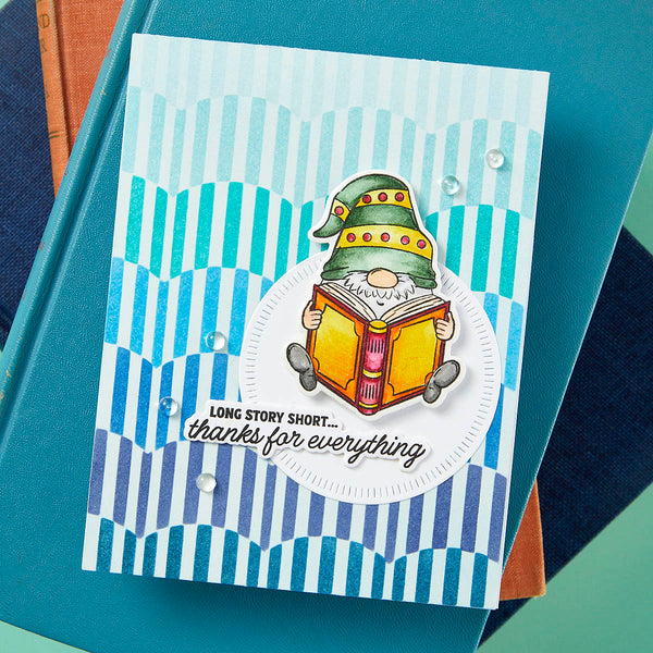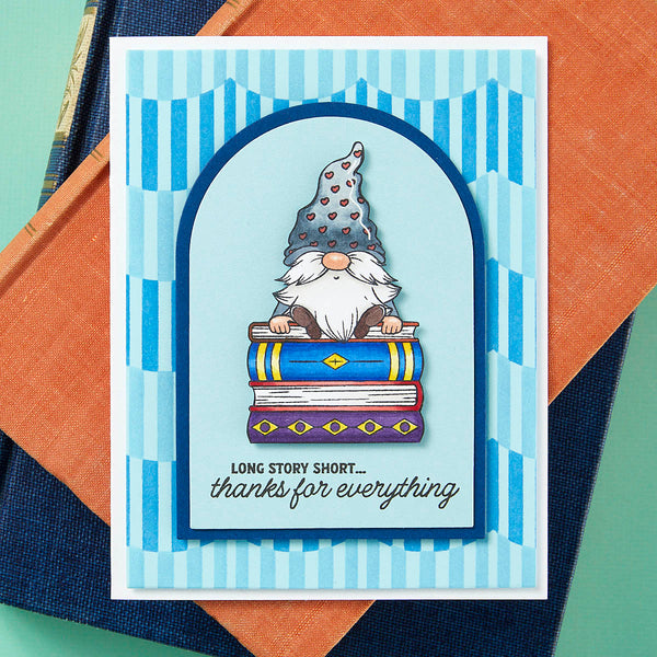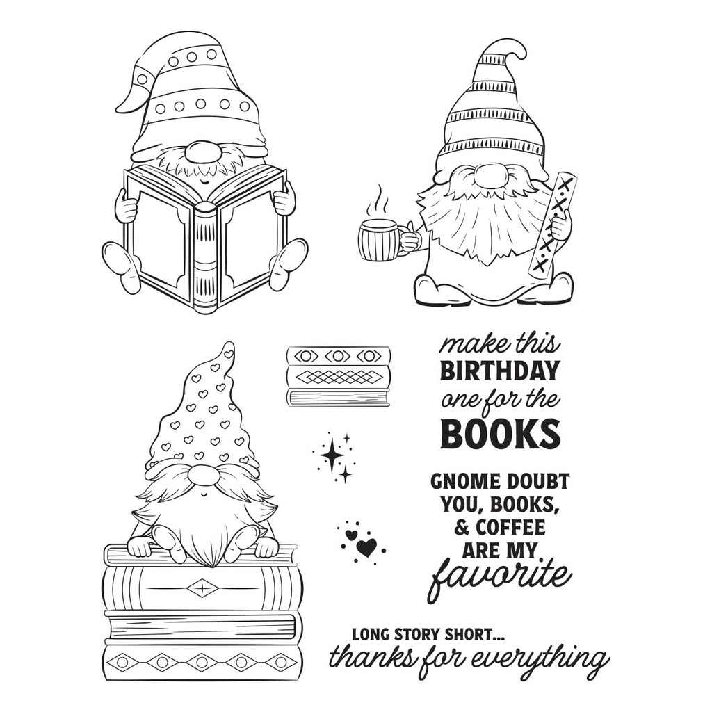 Storytime Gnomes - Clear Stamp of the Month - 9-Piece Clear Stamp of the Month is a unique and fun stamp set for the sweetest cards. Released March 2024 to our New Clear Stamp of the Month Club. This unique clear stamp set features high quality photopolymer for clear, crisp impressions. Made in the USA. Our stamps create one of the best impressions on the market giving you a perfect stamped image every time!