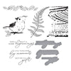 Woodland Tales Impressions Press Plate & Die Set is part of the Woodland Tales Collection. Natural elements such as a bird, texture pattern, fern and leaves are included in this set of five press plates and one thin metal cutting die. A press plate with four sentiments and a coordinating die to cut all at once complete this offering. Ink the plates with the BetterPress Ink to be pressed against the BetterPress Cotton Card Panel and Sheets for a crisp letterpress design.