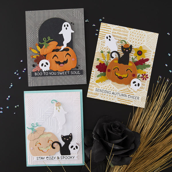 Layer the pieces for charming dimension, mix and match the accents for endless scenes, or pair them with your favorite sentiments for cozy, slightly spooky designs. Perfect for everything from sweet Halloween greetings to festive fall projects, this set captures the joyful spirit of harvest time.