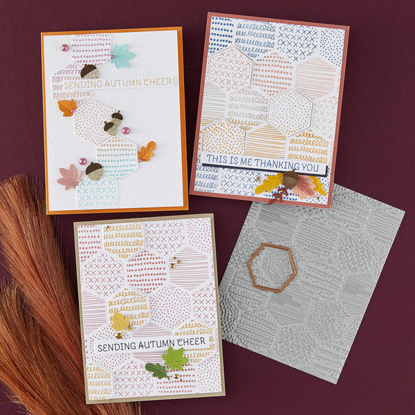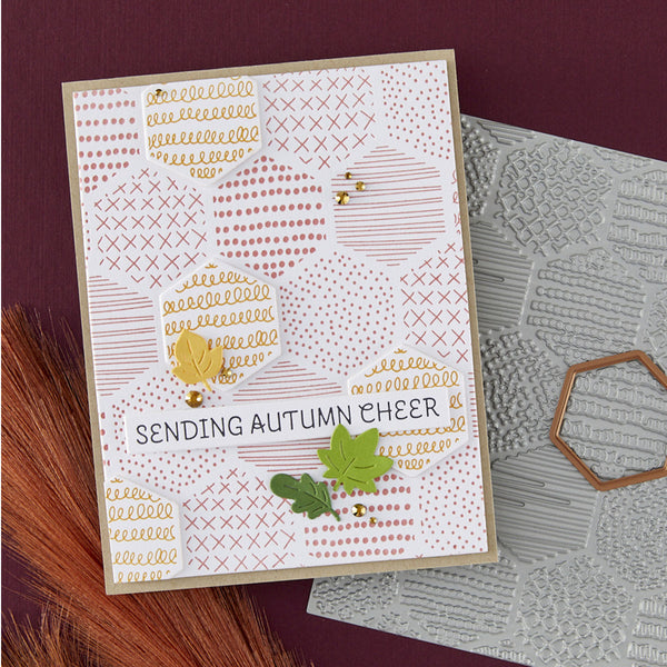 Press the full background for bold texture, or highlight individual hexagons for a custom patchwork look. Whether used with fall colors or bright year-round hues, this set brings effortless artistry and a handmade feel to your BetterPress creations.