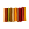 Merino Wool Felt Sheets - Fall Collection is 100% Merino Wool felt material and comes in a pack of 10 assorted colors. The colors include one each of Gourd, Rust, Sage, Mossy Forest, Burlap, Spicy, Acorn, Currant, Autumn, Amber.