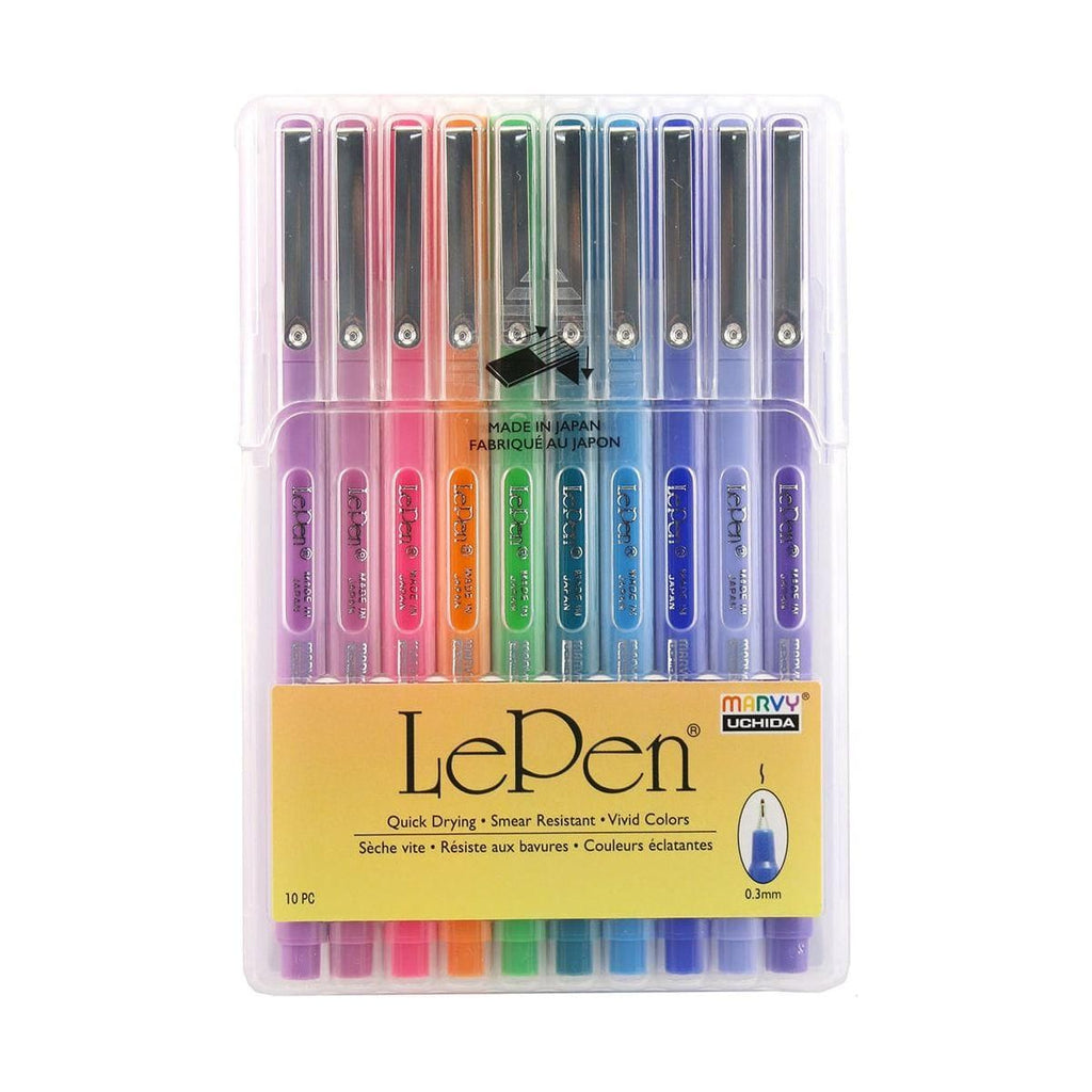 Le Pen Bright 10 Piece Set includes smooth micro-fine plastic point pens for precision in crafting, journaling, card making, scrapbooking, and many other creative projects.