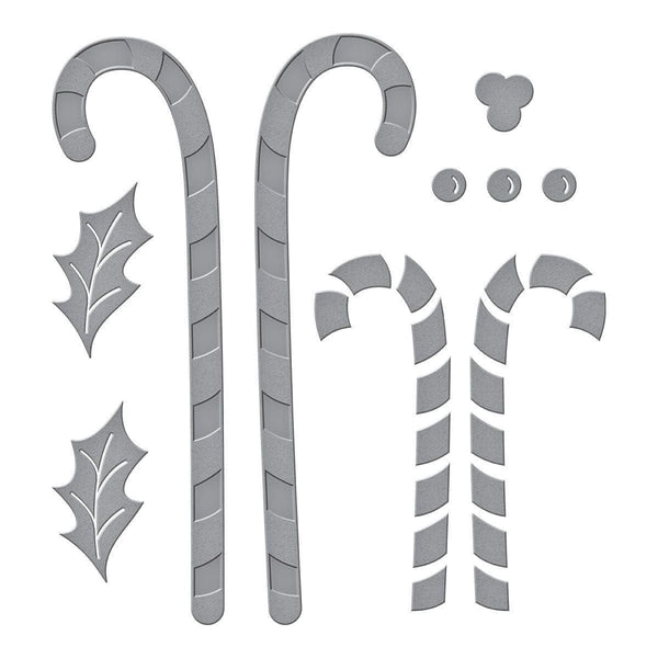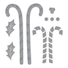 Candy Canes and Holly Etched Dies are from the Home for the Holidays Collection with a set of seven thin metal cutting dies. Crisscross the canes to make a wonderful focal point on a card front. Lift some of elements with foam adhesive to create interest and dimension. A perfect festive and classic holiday design!
