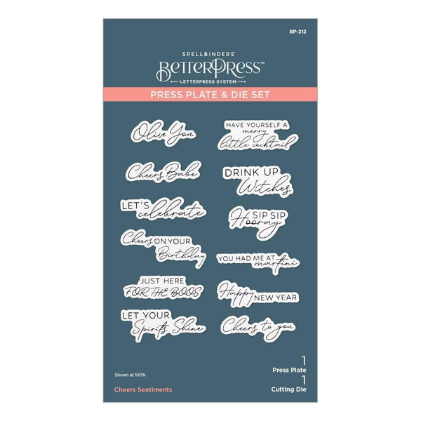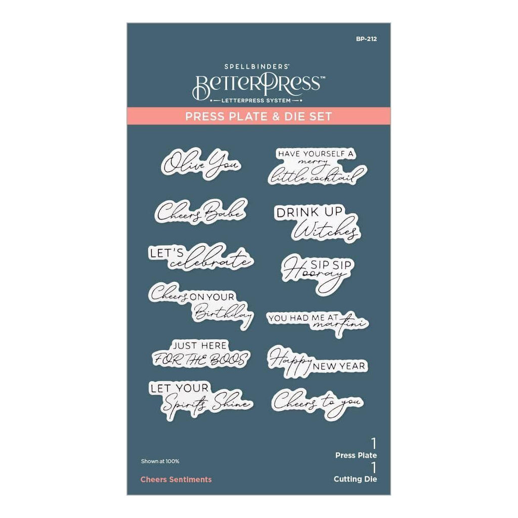 Cheers Sentiments Press Plate & Die Set is from the Happy Hour Collection and includes one press plate and a coordinating die. This "one and done" sentiment set pressed 12 sentiments at once, then cuts them all out in one pass with the accompanying die. With many fun phrases to go with all the products in this collection, this is one sentiment set that will have you saying Cheers!
