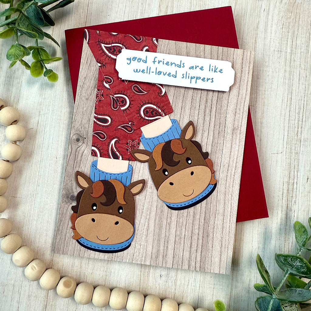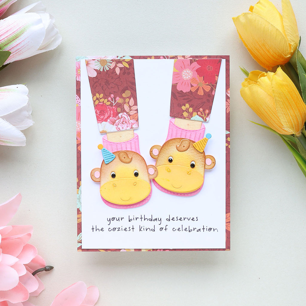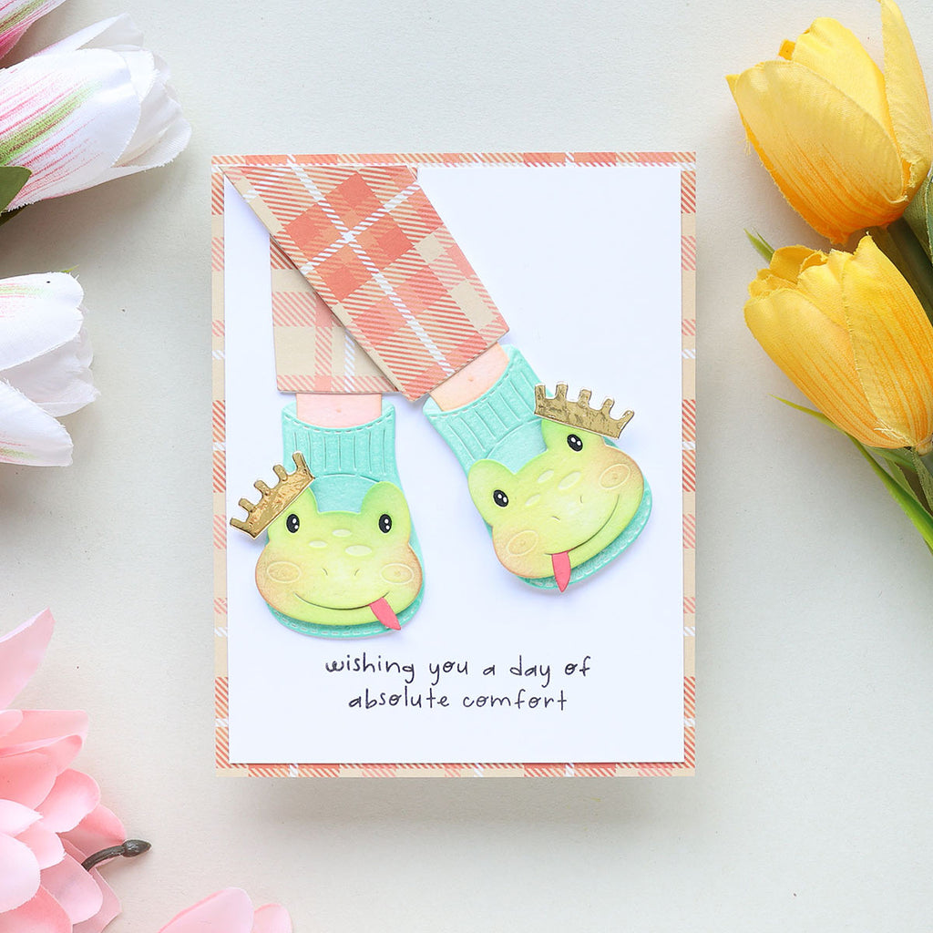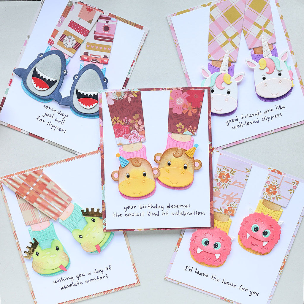 Cozy Toes Friends Etched Dies - Bring back the cozy with even more charm! The Cozy Toes Friends die set expands one of our most-loved club designs, Cozy Toes Slippers, with an irresistible new lineup of snuggly slippers. From a cheerful unicorn and happy cow to a friendly shark, monster, and frog, these playful pals are ready to warm your creative heart (and your toes).