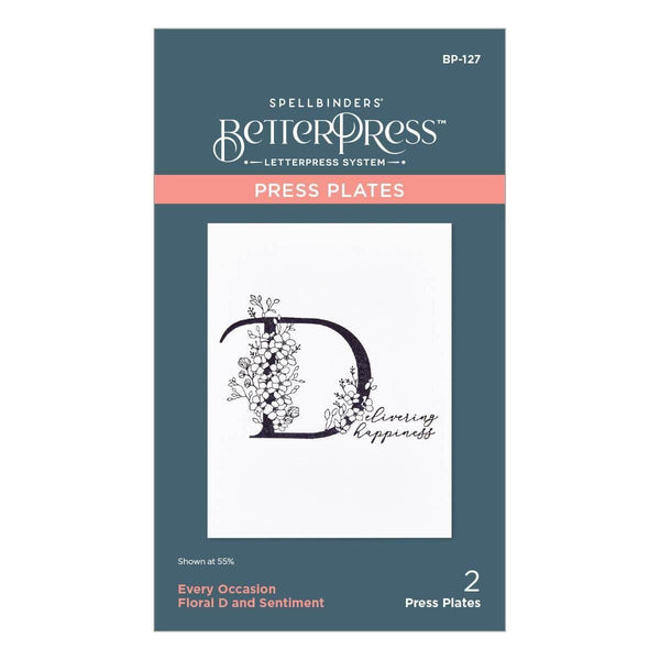 Floral D and Sentiment Press Plate is part of the Every Occasion Floral Alphabet Collection and includes two press plates. The largest plate is a stunning contemporary uppercase D font accented with floral details. The second plate compliments the letter with a sentiment, (D)elivering happiness. Ink the plates with the BetterPress Ink to be pressed against the BetterPress Cotton Card Panel and Sheets for a crisp letterpress design.