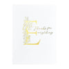 Floral E and Sentiment Press Plate is part of the Every Occasion Floral Alphabet Collection and includes two press plates. The largest plate is a stunning contemporary uppercase E font accented with floral details. The second plate compliments the letter with a sentiment, Thanks for (E)verything. Ink the plates with the BetterPress Ink to be pressed against the BetterPress Cotton Card Panel and Sheets for a crisp letterpress design.
