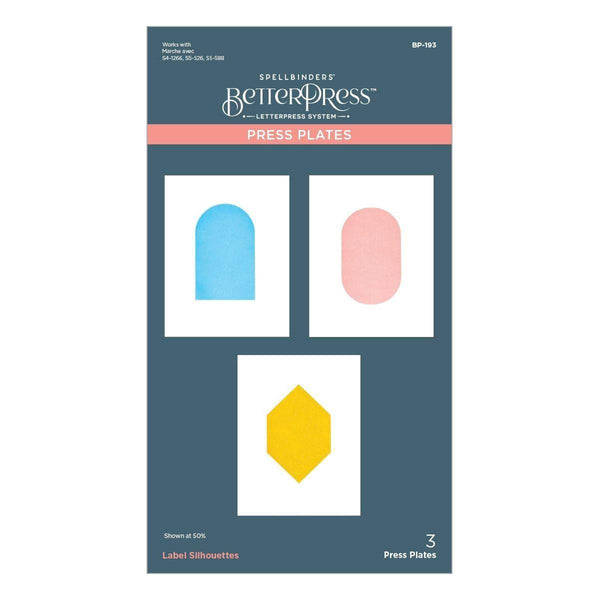 Label Silhouettes Press Plates are part of the Sealed 3D Christmas Collection and is a set of three press plates in wonderful basic shapes in oval, arch and hexagon. Do fun techniques such as make a background of overlapping multiple shapes with new color combinations. Or use color combinations to create an ombre background as a base to BetterPress another images. Many design options! Ink the plates with the BetterPress Ink to be pressed against the BetterPress Cotton Card Panel and Sheets for a crisp letterpress design.<