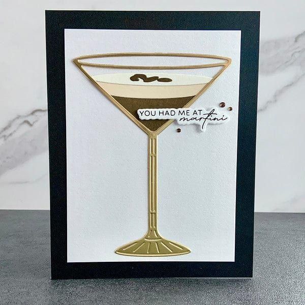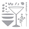 Olive Martinis Etched Dies are from the Happy Hour Collection. This sophisticated set of 14 thin metal cutting dies creates a mean martini. A martini glass and all the important garnishes are included! A must-have for those martini fans. This glass is also a perfect base for all the accessories in this collection. Try S4-1374 Happy Hour Christmas Cocktails for holiday fun and S4-1381 Happy Hour Boos for a spooky drink!