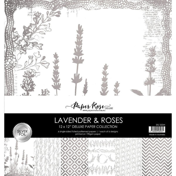Paper Rose - Silver Foil Lavender & Roses 12x12 Deluxe Paper Collection is a set of 6 single-sided foil patterned papers that are perfect for your papercraft projects. Whether you are making cards, scrapbooks, or home decor, these papers will add a touch of elegance and style to your creations. The papers are made of high-quality 190gsm cardstock and are proudly made in Australia. With this paper collection, you can unleash your creativity and craft beautiful projects with ease.