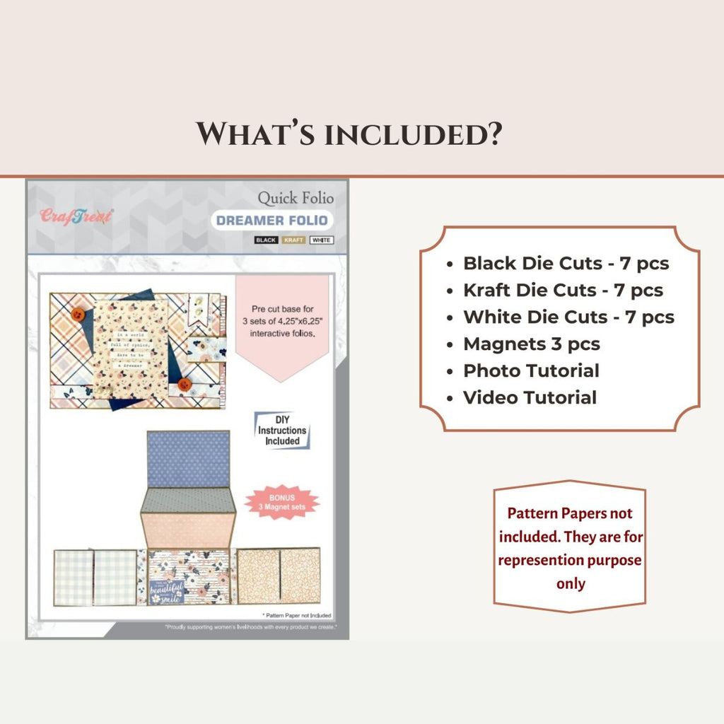 CrafTreat’s Dreamer Folio invites crafters to tell their story with movement, color, and heart. Designed with interactive accordion folds and flippable panels, this folio opens wide to reveal space for cherished memories, layered journaling, and beautiful patterned papers. It’s the perfect base for travel albums, milestone moments, or everyday snapshots worth celebrating.