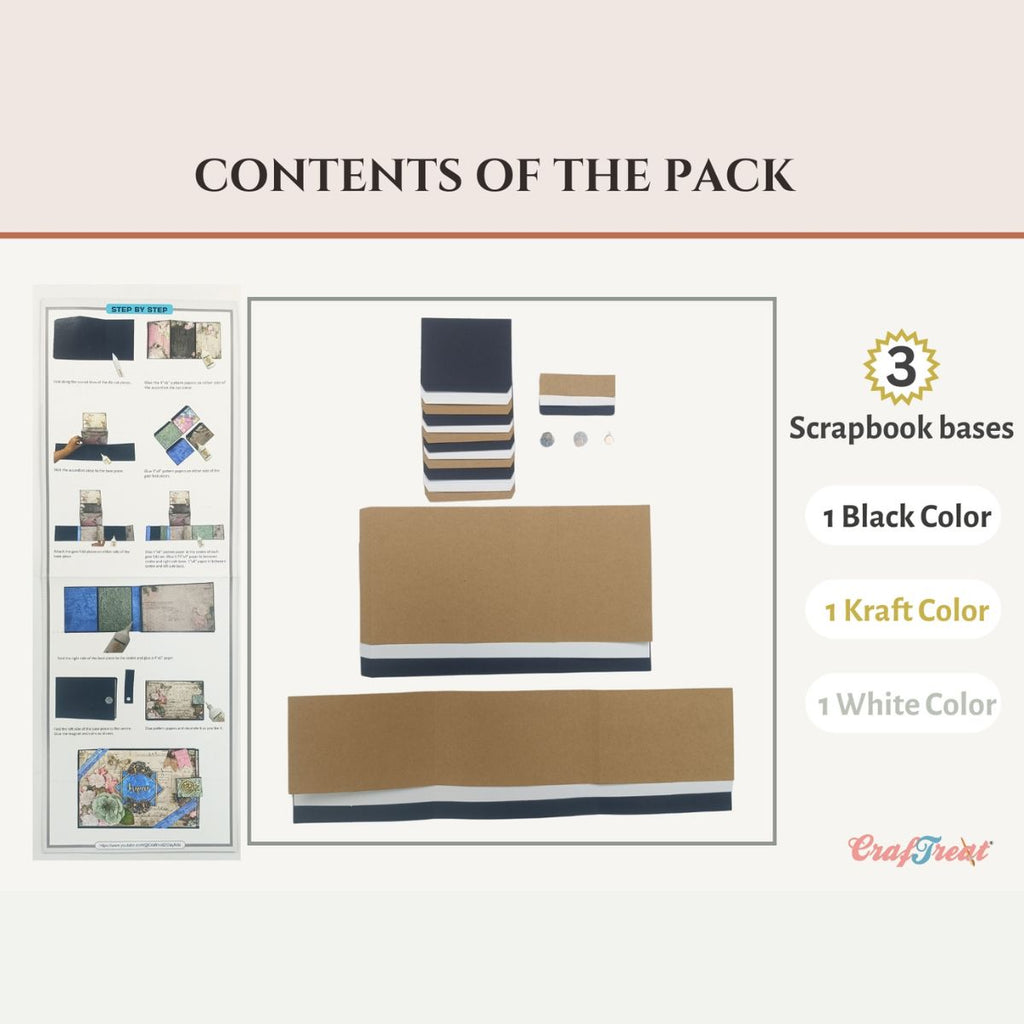 This set includes three pre-cut and pre-scored folio bases in black, kraft, and white—ready to decorate right out of the package. No measuring, trimming, or second guessing—just add your favorite 6" x 6" paper pads, photos, and embellishments to bring your vision to life.