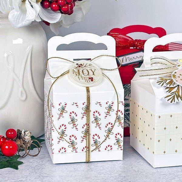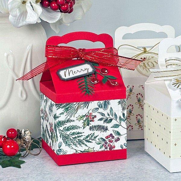 Ribbon Box Etched Dies are part of the Sealed 3D Christmas Collection. To create a complete box with handle, die-cut twice. A wonderful gift presentation for any occasion! When assembled, the box measures 2.50-inch square (4.50 in. tall with handle).