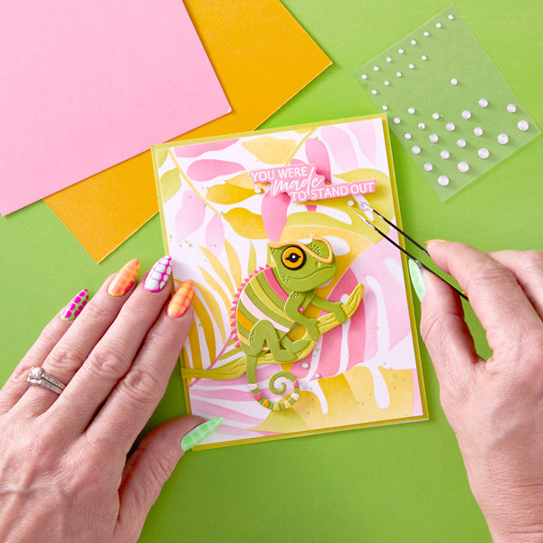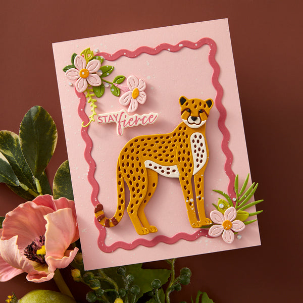 This jungle themed kit is jammed packed with products you’ll go wild for. You'll get 7 die sets, a full size 3D Embossing Folder, a stamp set, a stencil, a custom ColorWheel Cardstock Creative Spark Packpack, Rub-ons... and the signature Weekender collectible pin! These products make you feel like you're in a tropical oasis, and that's before you even get to crafting.