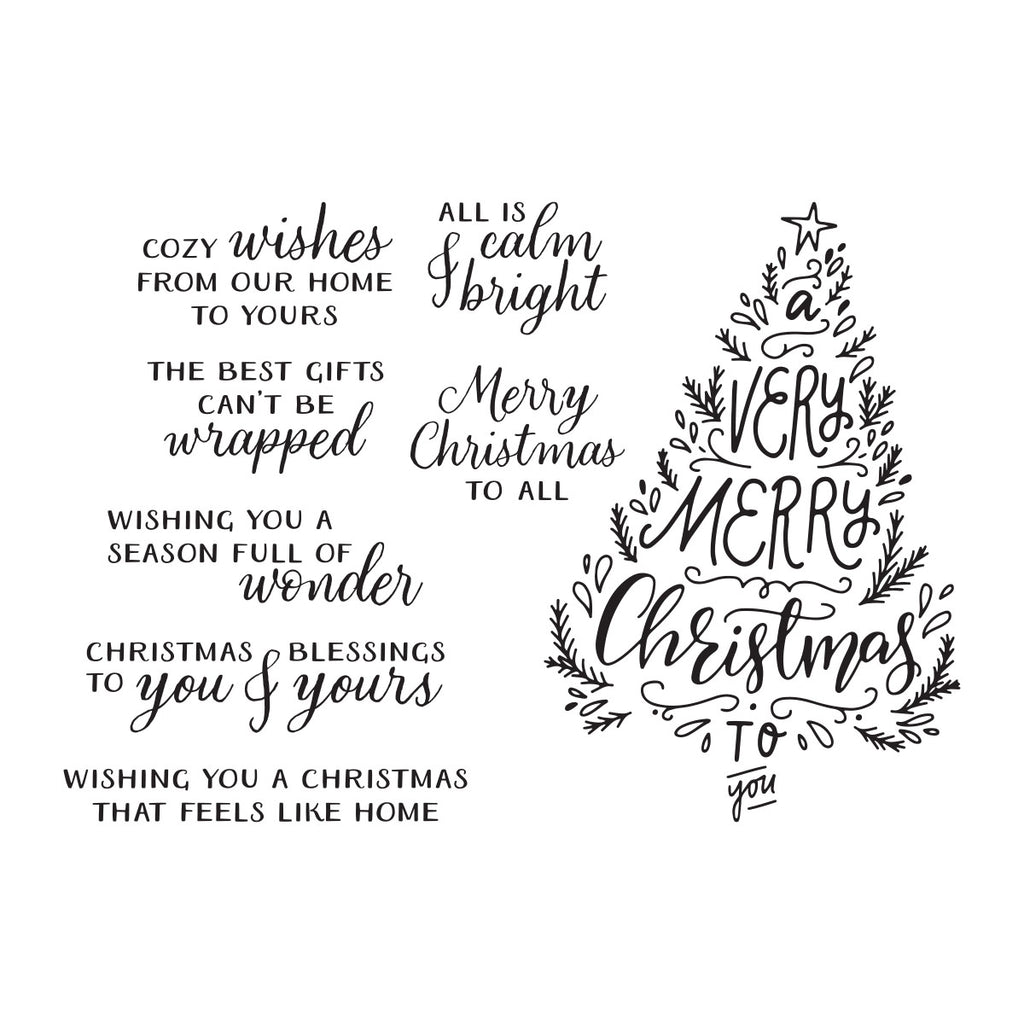 Use the large tree stamp as a striking focal point or pair the smaller greetings with your favorite dies and embossing folders. Whether you prefer classic, cozy, or modern designs, these timeless sentiments bring festive cheer to every handmade card, tag, or holiday note.