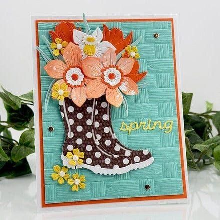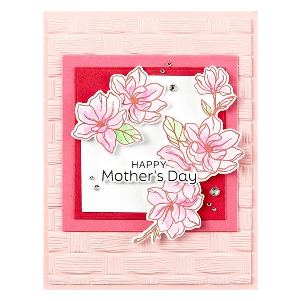 Woven 3D Embossing Folder is a 5.50 x 8.50-inch embossing folder with a background filled with wonderful and intricate weave design inspired the surface of a basket. What a fabulous addition to mixing and matching with the other sets in the Spring Sampler Collection by Simon Hurley!