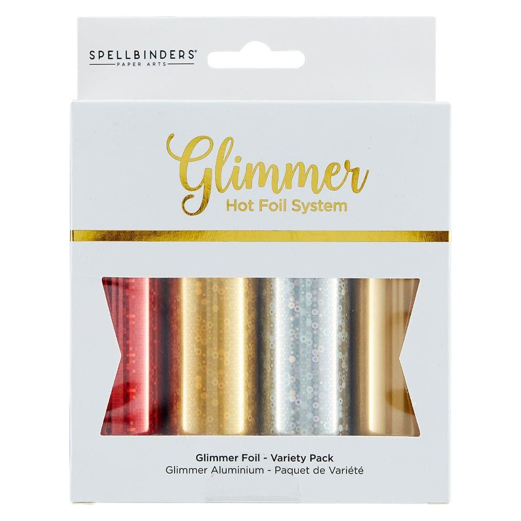 Glimmer Hot Foil 4 Rolls - Christmas Sparkle Variety Pack comes in four different colors. Each roll is 15-foot with a width of 5-inches. Colors include Sparkle Red, Sparkle Gold, Sparkle Silver, and Satin Gold.