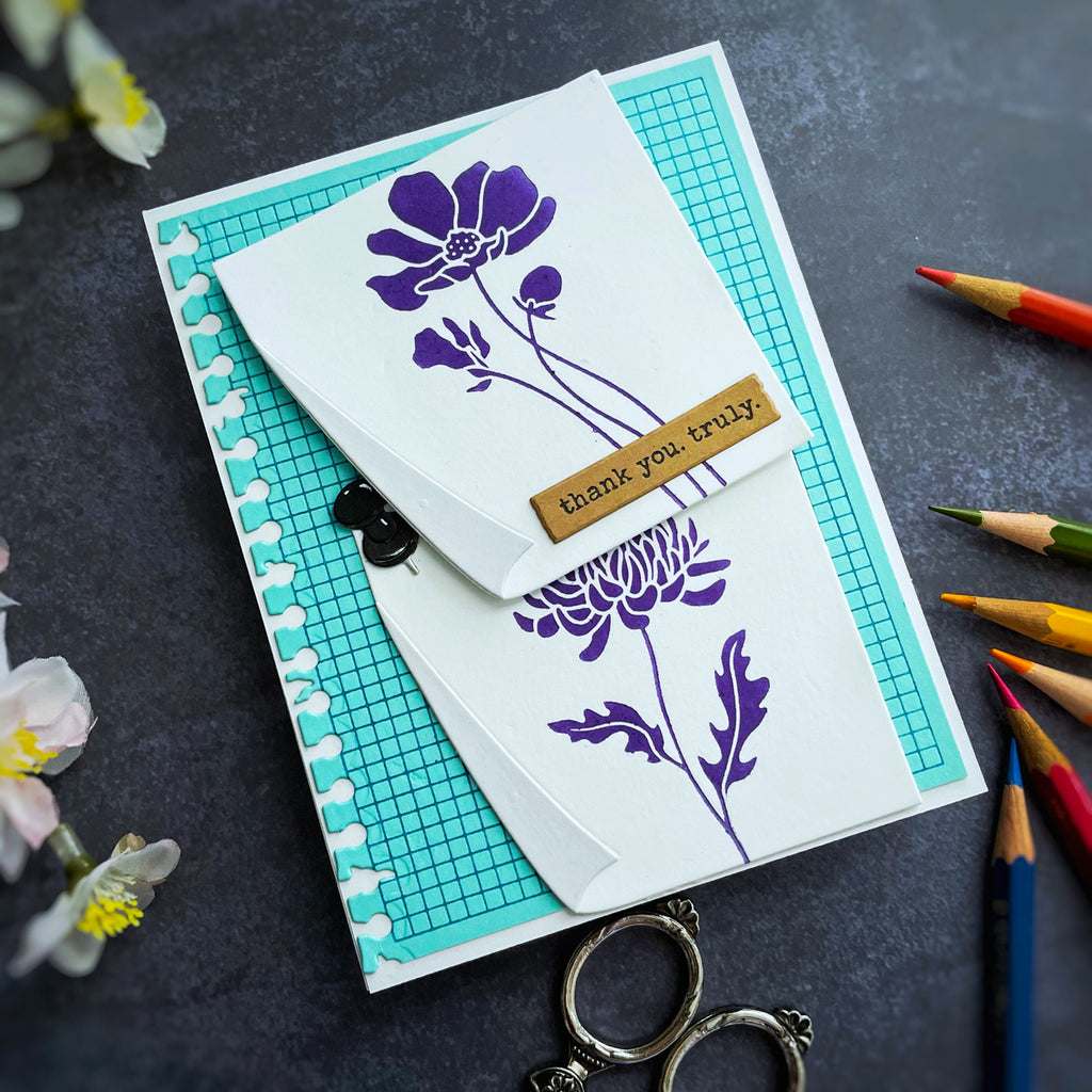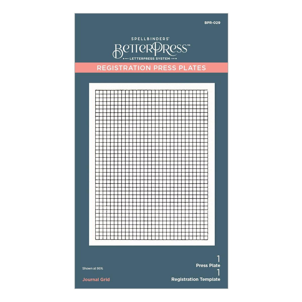 Journal Grid Registration BetterPress Plates are part of the Take Note Collection. The set of one press plate and two mylar printed registration templates come together to help you create your own grid paper! What a great background for a card, journal box and more.