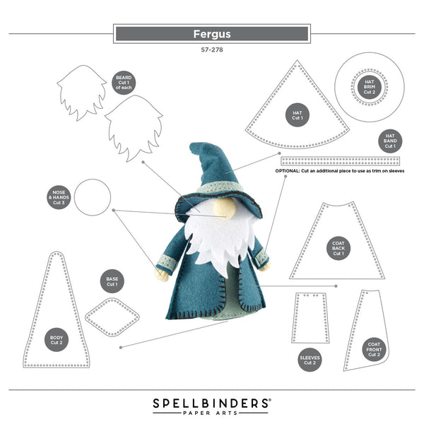 Fergus 3D Felt Décor Die Collection Bundle includes all the dies from this collection by Sandi MacIver. They are S7-278 Fergus, S4-1490 Autumn & Halloween Embellishments, and S4-1491 Winter & Christmas Embellishments. Together, this bundle can create Fergus, the gnome, ready for the fall and winter seasons…and everything in between! To give projects more interest, add sweet tiny buttons from our embellishment section!