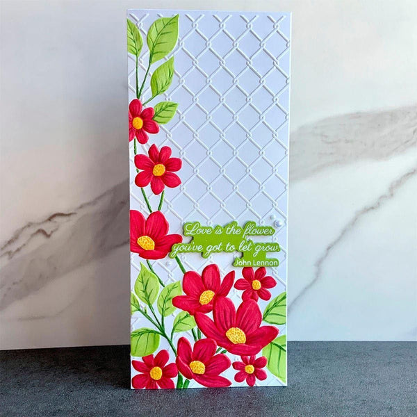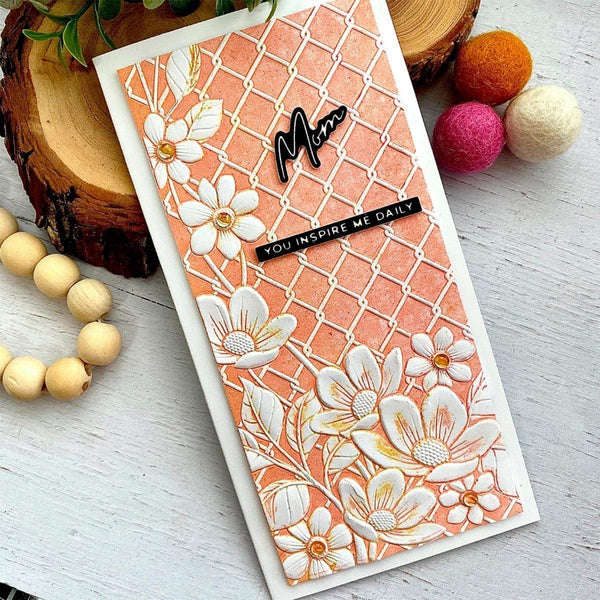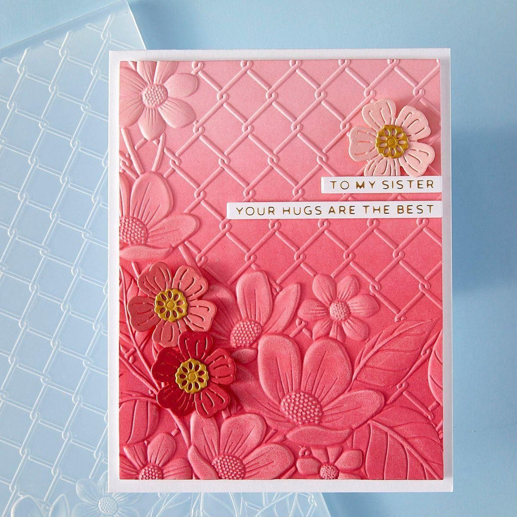 Floral Fence of Togetherness 3D Embossing Folder of the Month released March 2025 to our Embossing Folder of the Month Club. This large embossing folder can make slimline, 5.5″ x 8.5″, and a variety of sized projects. Perfect for adding even more texture and dimension to your card projects.