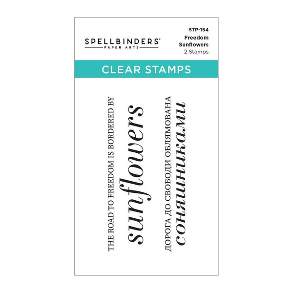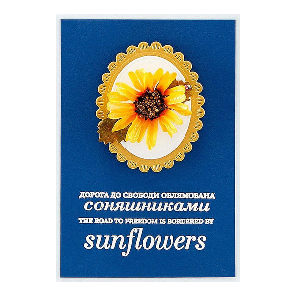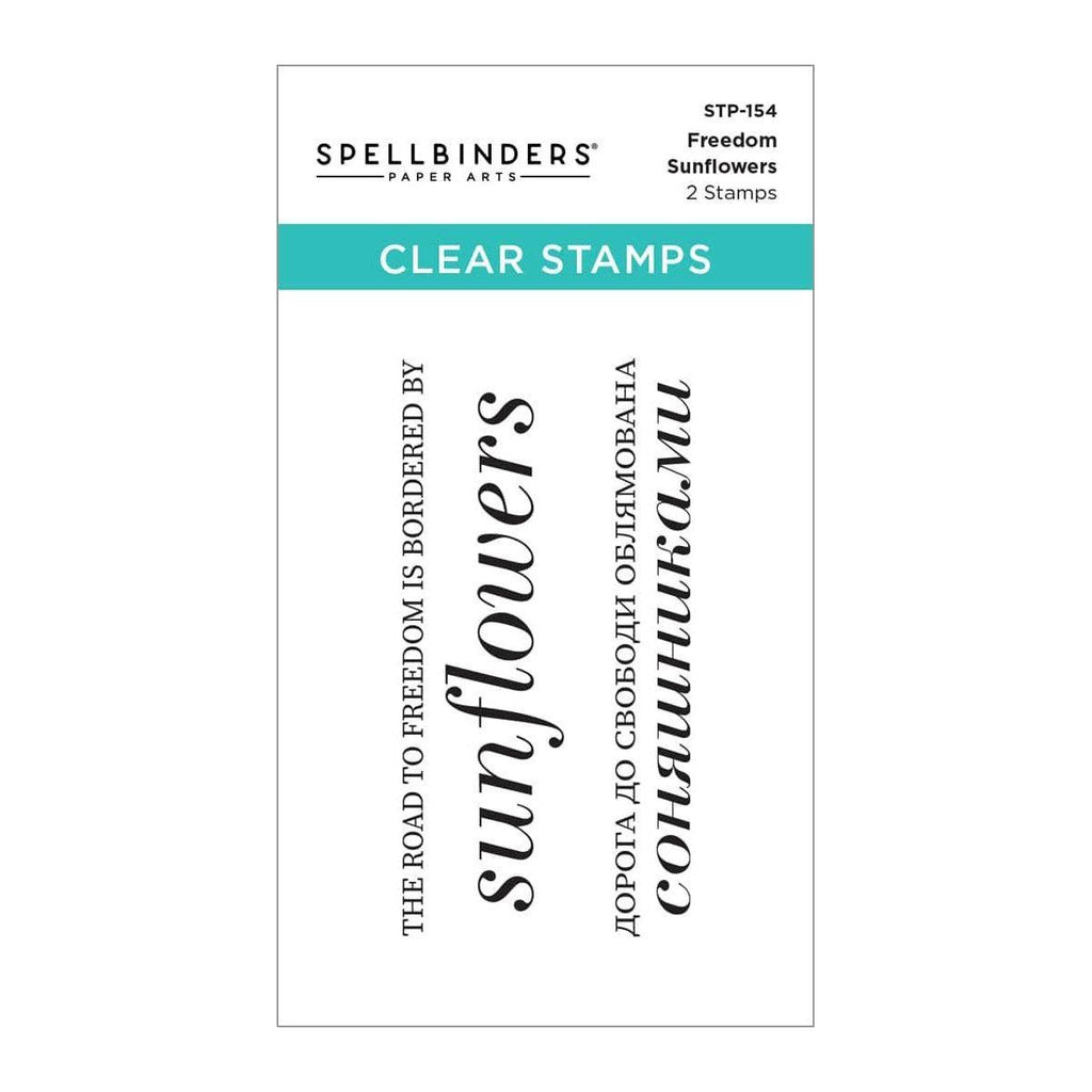 Freedom Sunflowers Clear Stamp Set includes two stamps with "The road to freedom is bordered by sunflowers" in English and Ukrainian. Support Ukraine's freedom, and make cards for the Armed Forces of Ukraine and refugees of the Ukraine invasion.