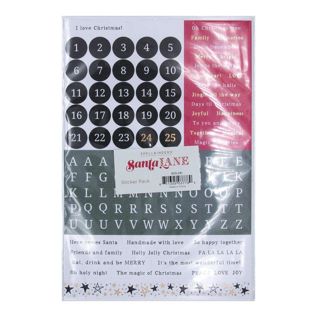 Santa Lane Sticker Pack is part of the Santa Lane Collection. There are four sheets of cardstock stickers. Designs included are phrases, images, borders, and more. Add them to any holiday paper crafting creations for the perfect accent to share with loved ones.