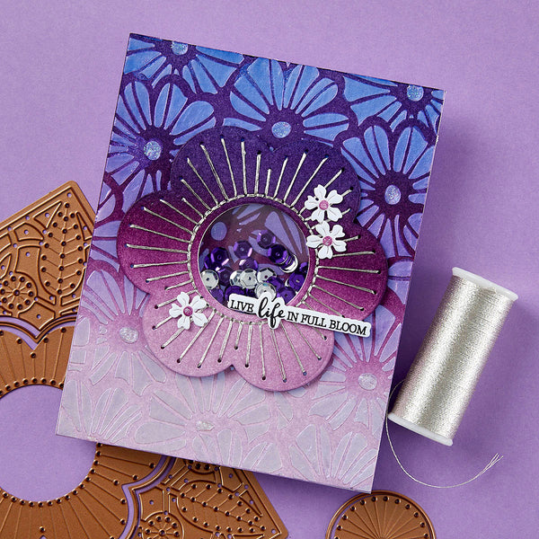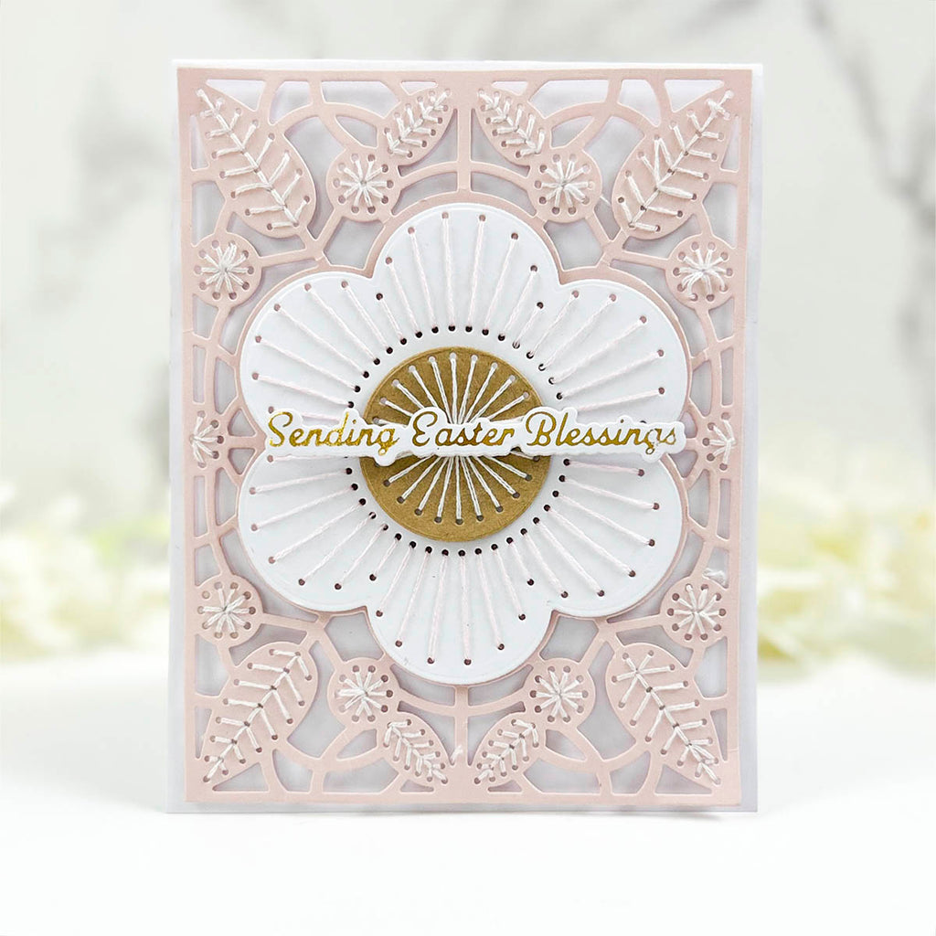 Stitched Floral Focal Card Front- Stitching Die of the Month Die this 5-piece die set released February 2024 to our Stitching Die of the Month Club creates a Spring cardfront for your seasonal cards. Use to create cards, décor, gift card holder, gifts, and more! Add stitching to have even more textures in crafts.