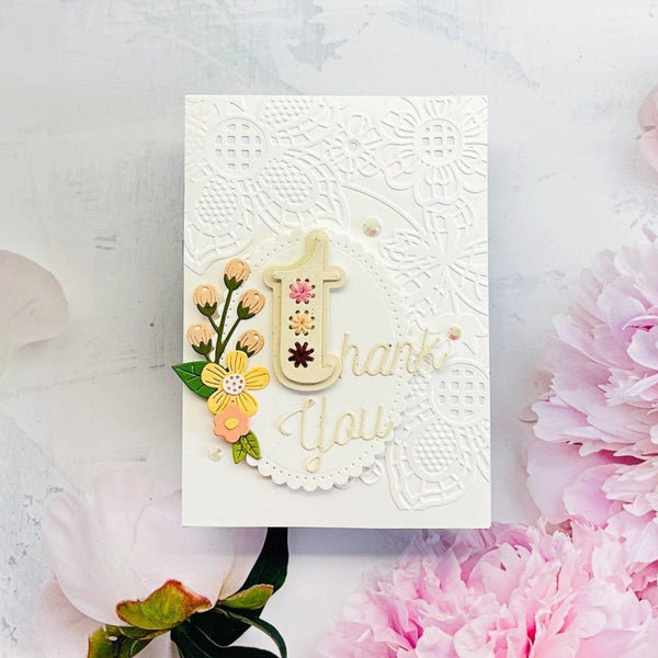 This Stitched t Etched Dies is from the Stitched Alphabet Collection. The set of two thin metal dies that include the serif font of the lowercase letter t and its outline shape. The letter cuts sweet floral burst accents of dots and lines which acts as a guide for stitching the pattern with embroidery floss and needle. Or use as is. The choice is yours! Designer’s Tip: use two strands of a six-strand DMC Floss or DMC Diamant Metallic Thread and Size 22 Tapestry Needle (sold separately) are recommended.