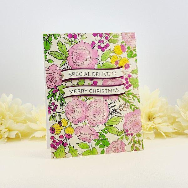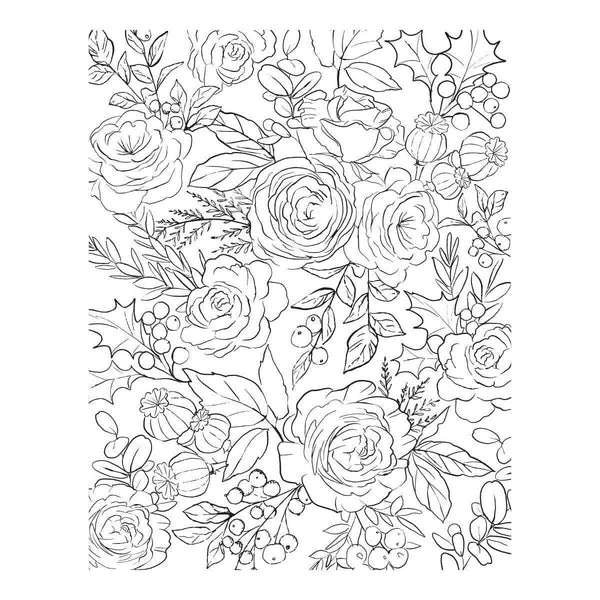 Winter Rose Background BetterPress and Stencil Bundle is from the Handmade Holidays Collection. It includes BP-195 Winter Rose Background Press Plate and STN-091 Layered Winter Rose Background Stencil. The set presses a beautiful rose background and adds color to the blossoms with four 5 x 7 in./12.70 x 17.80 cm durable mylar stencil sheets. The Layered Winter Rose Background Stencil is exclusive to this bundle set.
