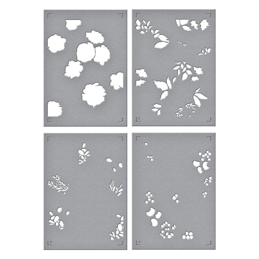 • STN-091 Layered Winter Rose Background Stencil (4 pcs): 5.00 x 7.00 in./12.70 x 17.80 cm