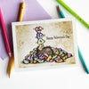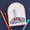 Candy Hearts Cling Rubber Stamp Set is part of the House-Mouse Winter Collection with a set of three stamps. Playful Mudpie lies on a pile of candy hearts while juggling a few on her nose. Also included are two sentiments, Happy Valentine’s Day and I {heart} U. Designed to be used with an acrylic block.