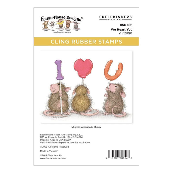 We Heart You Cling Rubber Stamp Set is part of the House-Mouse Winter Collection with a set of two stamps. Mudpie, Amanda and Muzzie trying their best to line up to spell a heartfelt message! Also included is a “Thinking of You” sentiment. Designed to be used with an acrylic block.