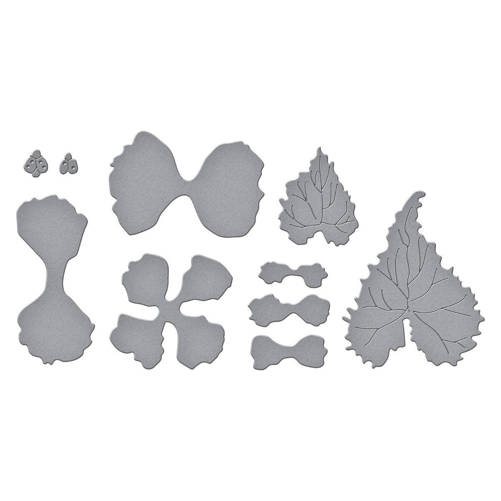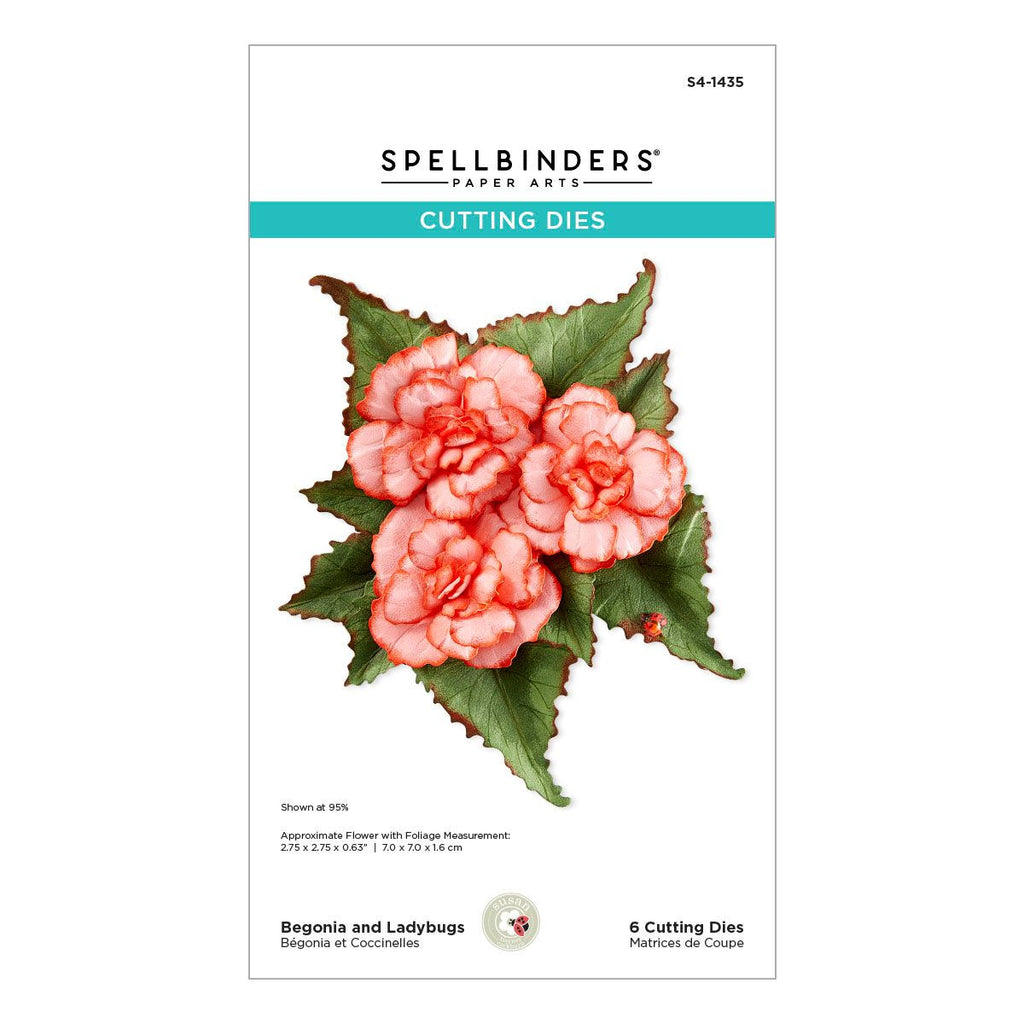 Begonia and Ladybugs Etched Dies are from the Summer Solstice Garden Collection by Susan Tierney-Cockburn. When assembled, the set of six thin metal cutting dies makes a beautiful Begonia flower and includes Susan’s signature sweet ladybug design. The finished flower with foliage measures approximately 2.75 x 2.75 x 0.63 in./7.00 x 7.00 x 1.60 cm.
