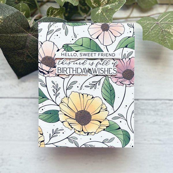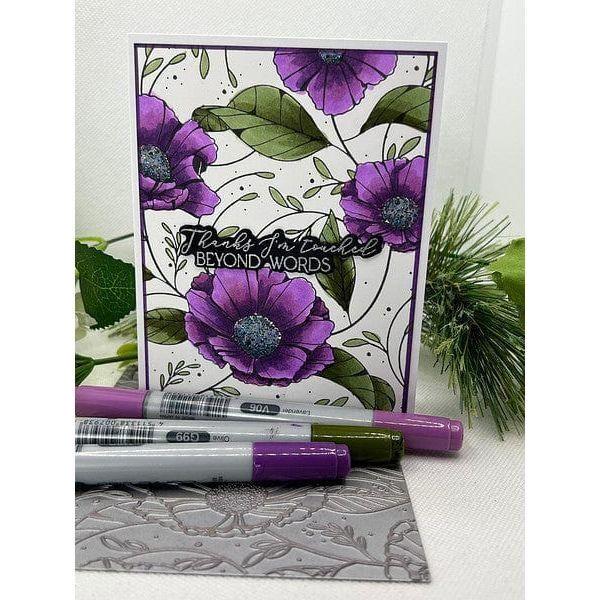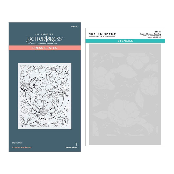 Cosmo Backdrop BetterPress and Stencil Bundle is from the Fresh Picked Collection. The bundle includes BP-105 Cosmos Backdrop Press Plate and STN-073 Layered Cosmos Backdrop Stencils. The stencil set (five sheets) is exclusive to this bundle and is made of durable mylar material. Using both brings depth and interest to the blooms. It is a must-have for Cosmos and flower fans!