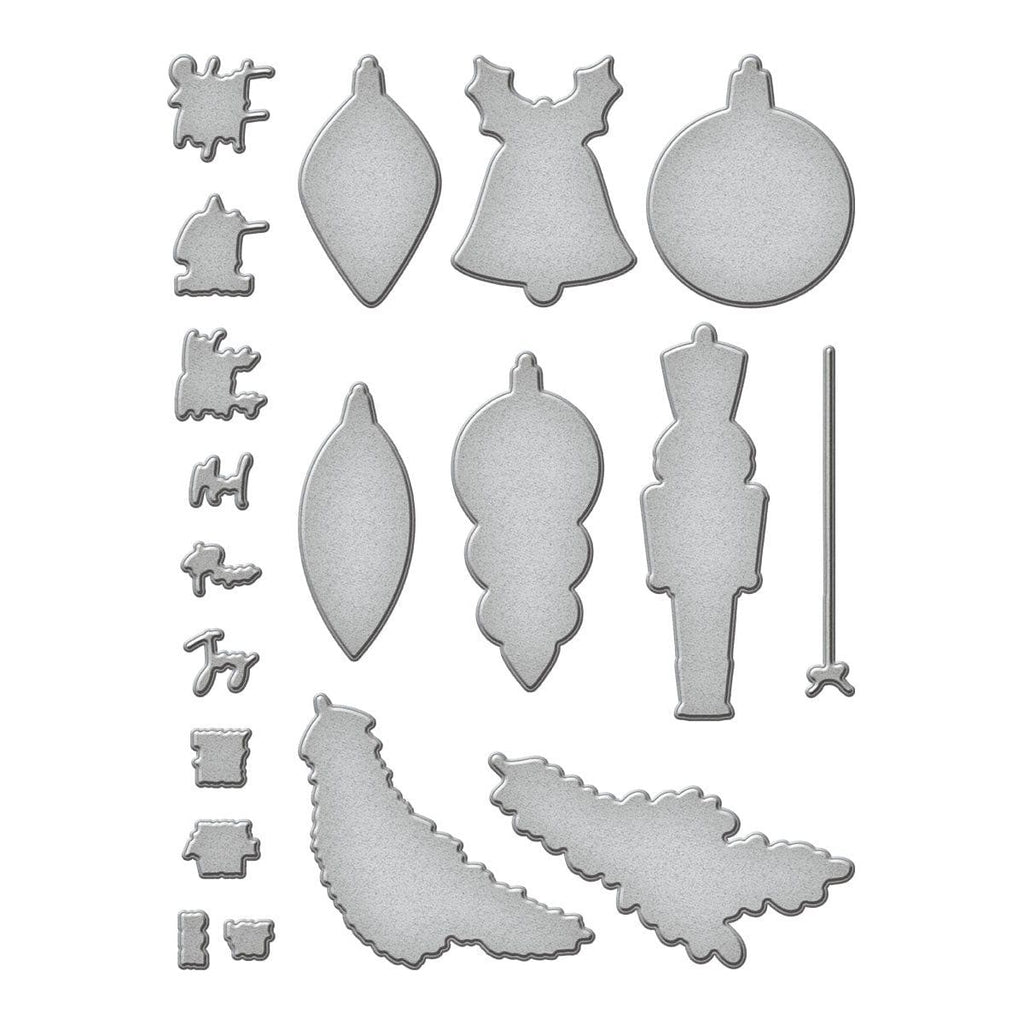 Featuring winter sentiments, patterned ornaments, pine needles, and nutcracker stamp, create clear designs on crafts, cards, scrapbooks, and tags. Further define stamp designs by stamping onto coordinating die cuts to add more dimension to projects.