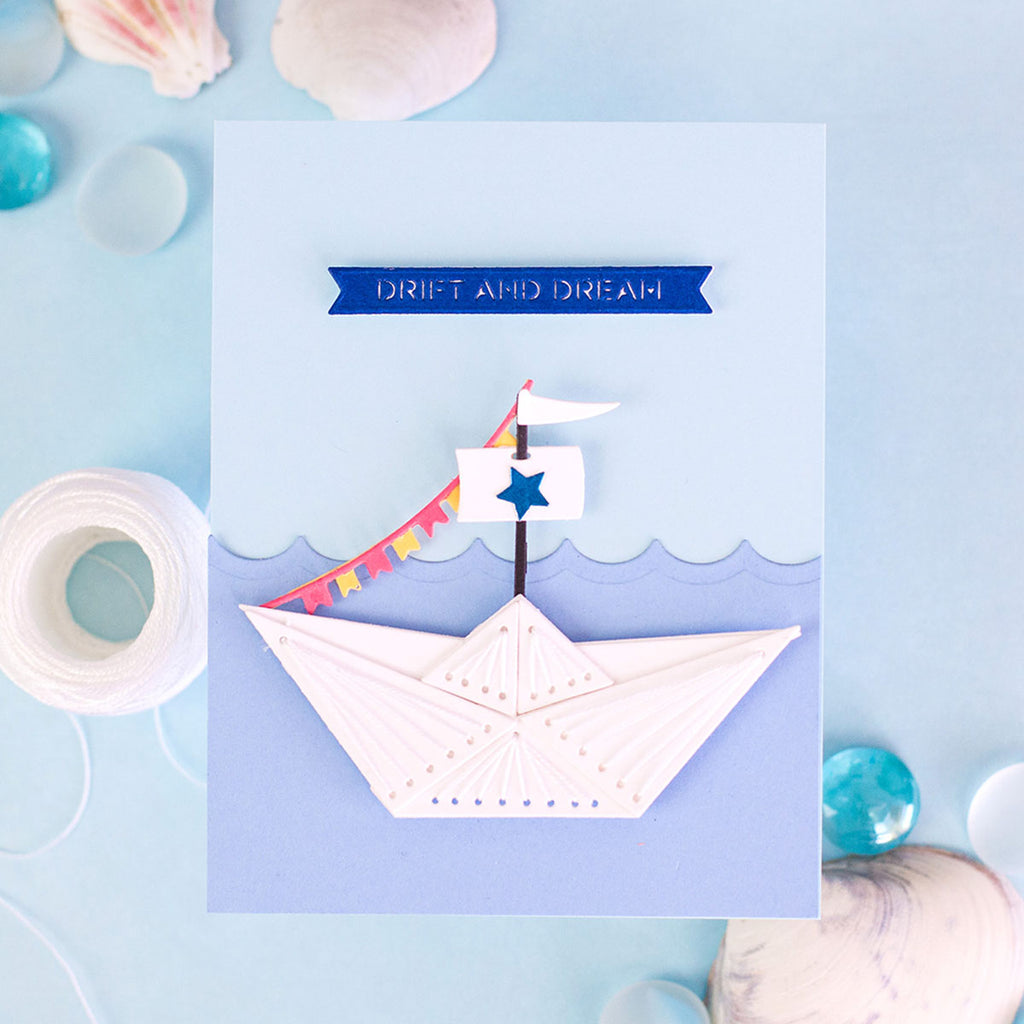 This stitching die set includes detailed pieces to build a dimensional boat, complete with decorative banners and sweet accents. Add stitched details for texture, pair with your favorite sentiments, and experiment with colors and threads to make each design uniquely yours. Perfect for summer, nautical, or everyday themes, this set invites you to drift, dream, and create projects folded with love.