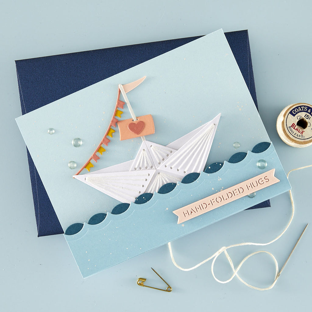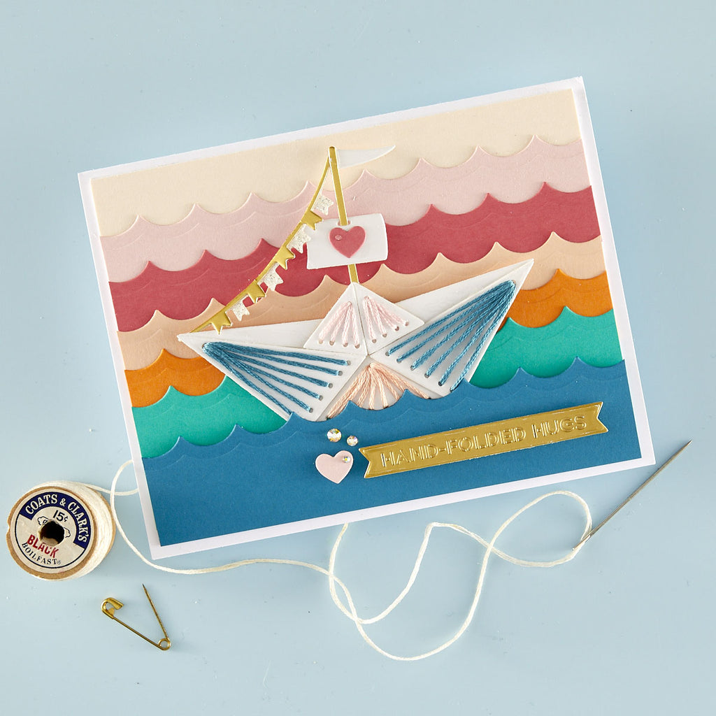 Set sail on a wave of creativity with the Hand Folded Stitch Die of the Month. Designed to capture the charm of a hand-folded paper boat, this die set brings a playful and nostalgic touch to your cards, tags, and scrapbook pages. Whether you’re crafting for celebrations, encouragement, or simply to share a little handmade love, this design makes every project feel heartfelt.