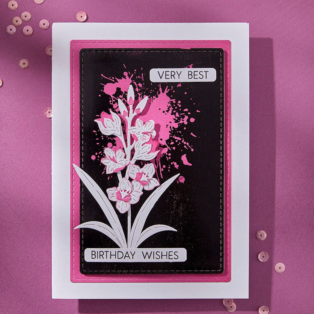 Layered Gladiolus Etched Dies are from the Wildflowers Collection by Lisa Horton. When assembled, this set of 14 thin metal cutting dies makes a glorious Gladiolus flower with its signature trumpet-shaped bloom and leaves! The finished Gladiolus measures approximately 3.00 x 4.39 in./7.60 x 11.20 cm.