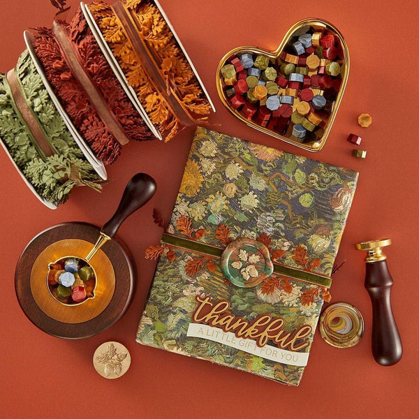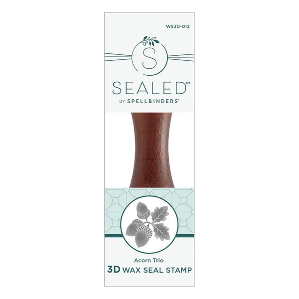 Acorn Trio 3D Wax Seal Stamp is part of the Falling Leaves Collection. It has one wooden handle that supports a 1-inch round brass stamp design on its end. It stamps an intricate design of a trio of acorns on its stem. What a great way to accent on any fall-themed project!